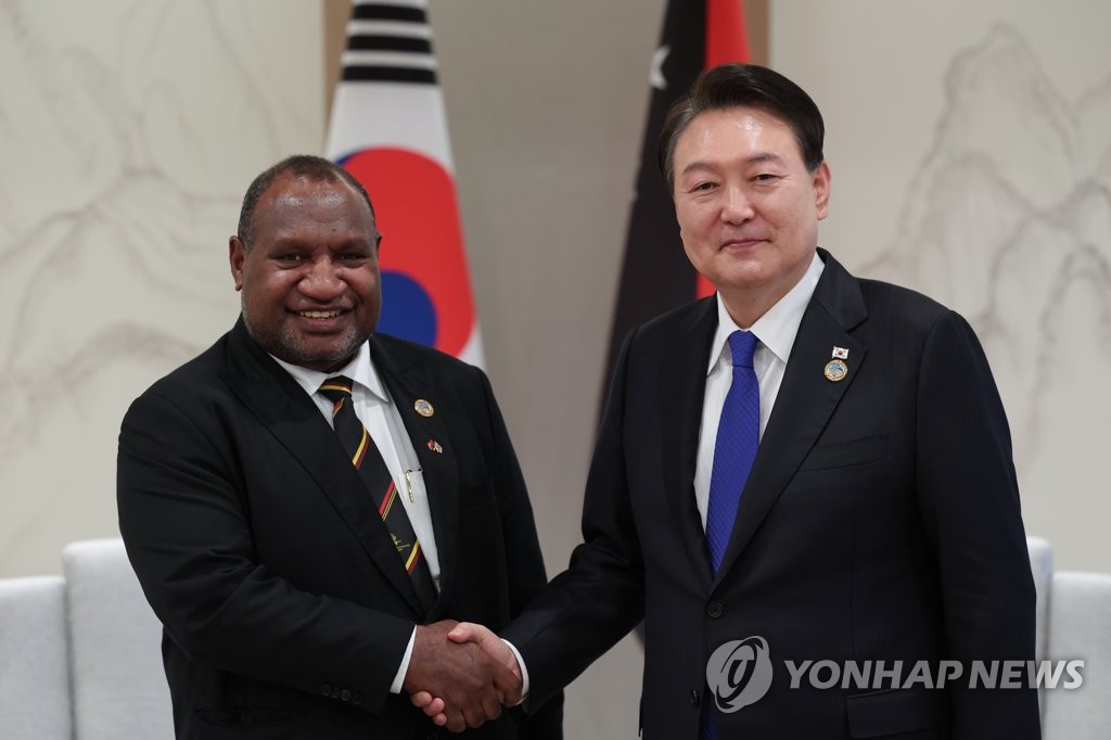 In the final leg of the summits, Yoon suggested South Korea and Papua New Guinea strive together for the prosperity of the Indo-Pacific region, and thanked the country for its decision to support South Korea's bid to host the 2030 World Expo.
