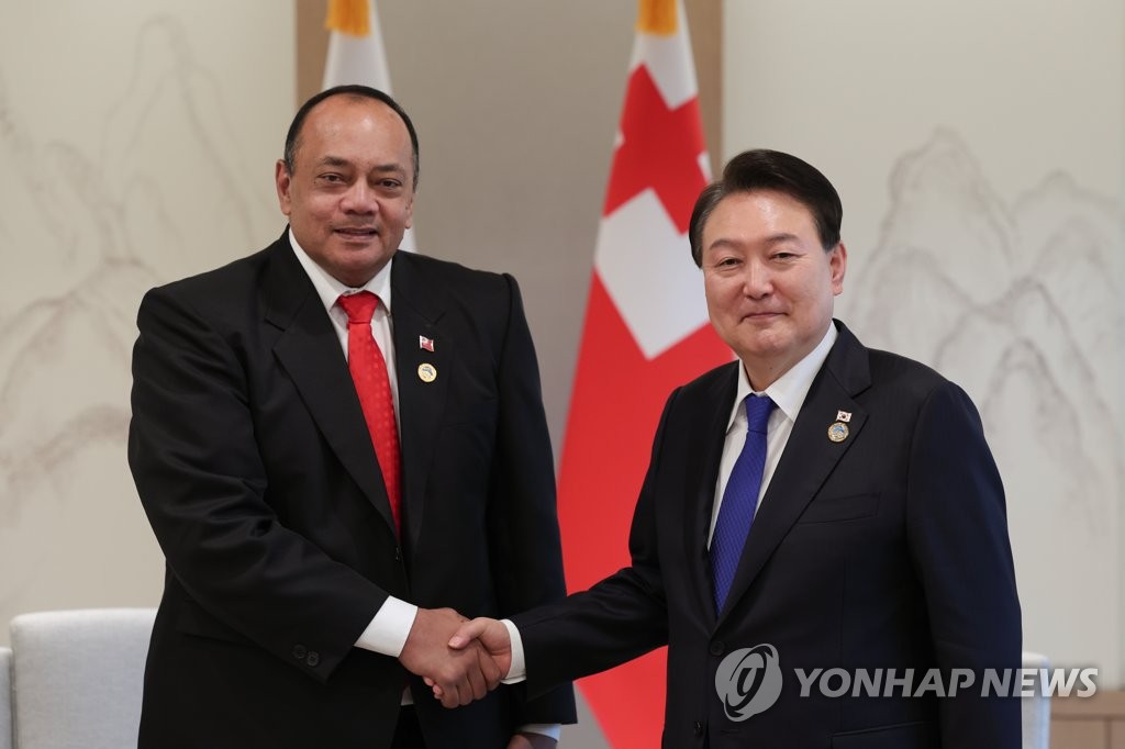 In his talks with the Tongan prime minister, Yoon noted how Tonga is the first Pacific island nation that established diplomatic ties with Seoul in 1970. He also thanked Sovaleni for his swift response to a massive undersea volcanic eruption in January last year that left 24 South Korean residents there unscathed.
