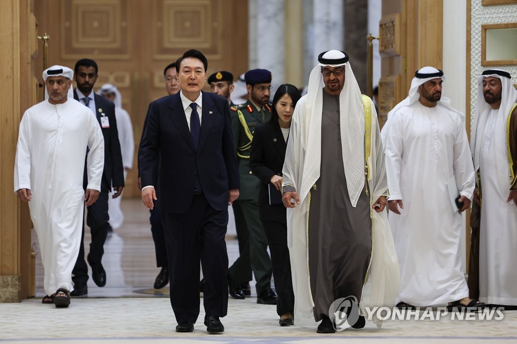 The summit took place at the Qasr Al Watan presidential palace on the second day of Yoon's four-day state visit to the UAE, the first such visit by a South Korean leader since the two sides established diplomatic ties in 1980.