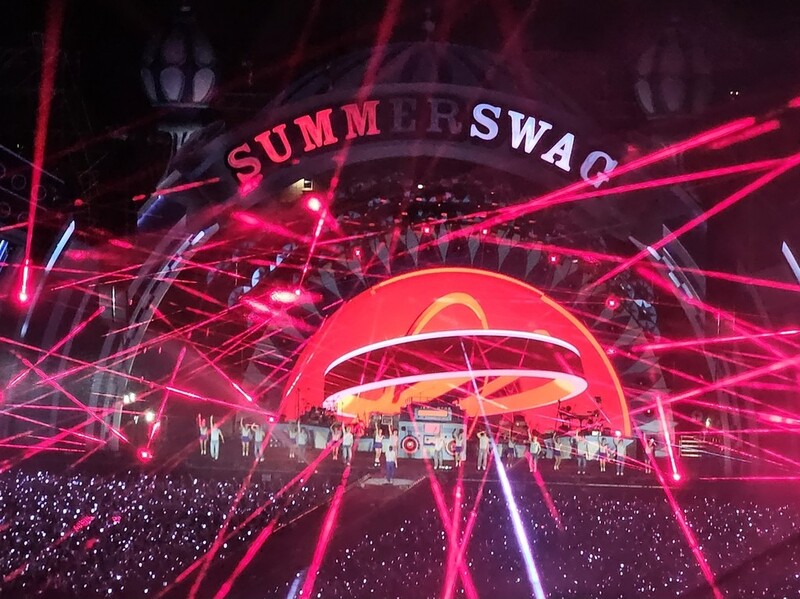 해가 진 뒤에는 관객들이 손바닥에 착용한 응원용 너클밴드가 여러 가지 색으로 발광하며 공연장 분위기를 한층 끌어올렸다.