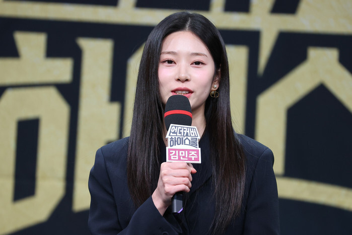 South Korean actres Kim Min-joo, who stars in the MBC-TV's new drama "Undercover High School," speaks during a publicity event in Seoul on Feb, 20, 2025. The first episode of the drama will be aired on Feb. 21. (Yonhap)