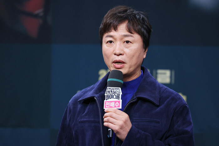 South Korean actor Jeon Bae-soo, who stars in the MBC-TV's new drama "Undercover High School," speaks during a publicity event in Seoul on Feb, 20, 2025. The first episode of the drama will be aired on Feb. 21. (Yonhap)