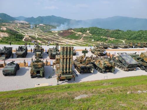 ▲ Weapons systems are on display at the site of the Combined Joint Live-Fire Exercise in Pocheon, 52 kilometers northeast of Seoul, on May 25, 2023. (Yonhap)