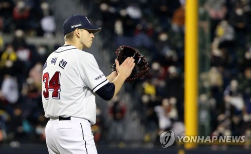 SEOUL, Nov. 4 (Yonhap) -- His own manager had been concerned about his ability to handle postseason nerves, but Doosan Bears' right-hander Chris Flexen looked completely in control on the mound on Wednesday.