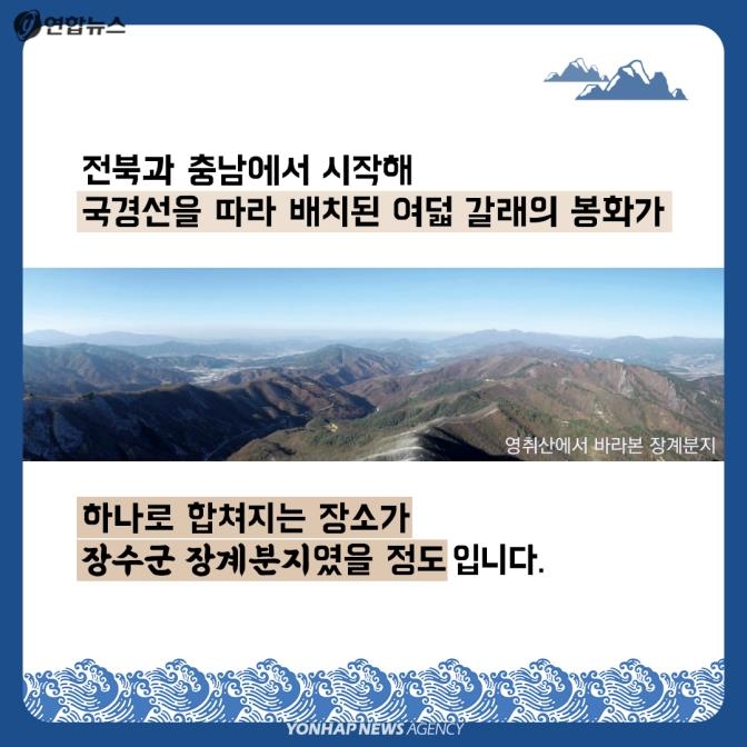 전북과 충남에서 시작해 국경선을 따라 배치된 여덟 갈래의 봉화가 하나로 합쳐지는 장소가 장수군 장계 분지였을 정도입니다.