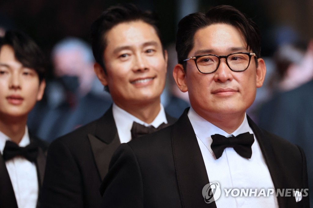 | ▲ 칸 영화제 초청작 상영 앞두고 극장 도착하는 한재림 감독 (칸 AFP=연합뉴스) 제74회 칸 국제 영화제 폐막을 하루 앞둔 16일(현지시간) 프랑스 남부 칸의 '팔레 데 페스티발' 뤼미에르 대극장에서 영화 '비상선언' 상영을 앞두고 한재림 감독(오른쪽)과 배우 임시완(왼쪽)·이병헌(중앙)이 극장에 도착하고 있다. 한 감독의 신작 '비상선언'은 이번 영화제의 비경쟁 부문에 초청됐다. sungok@yna.co.kr |