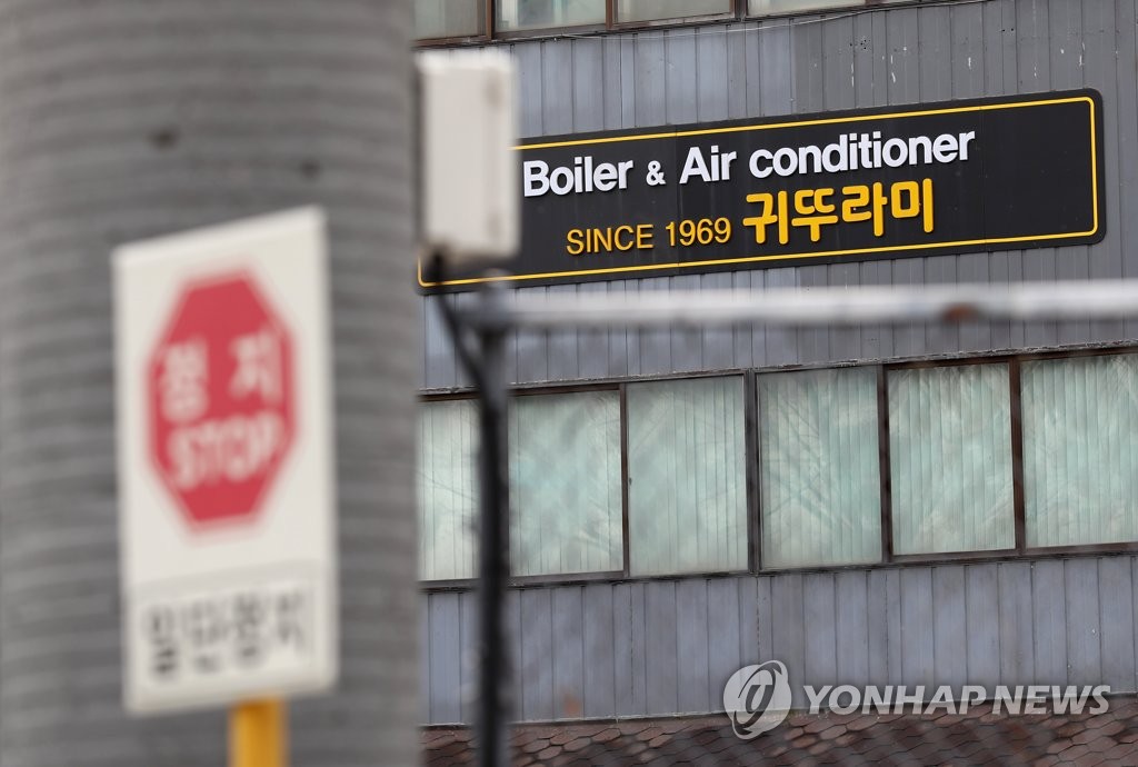 | ▲ This photo, taken Feb. 16, 2021, shows a plant of Kiturami Boiler Co. in Asan, 100 kilometers south of Seoul, which reported a mass cluster infection of the new coronavirus. (Yonhap) |