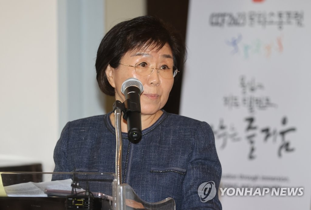 | ▲ 인사말 하는 최정화 한국이미지커뮤니케이션연구원 이사장 (서울=연합뉴스) 류효림 기자 = 최정화 한국이미지커뮤니케이션연구원 이사장이 13일 서울 서대문구 주한프랑스 대사관저에서 열린 CICI 20주년 기념 CCF 2023 문화소통포럼에서 인사말을 하고 있다. 2023.6.13 ryousanta@yna.co.kr |