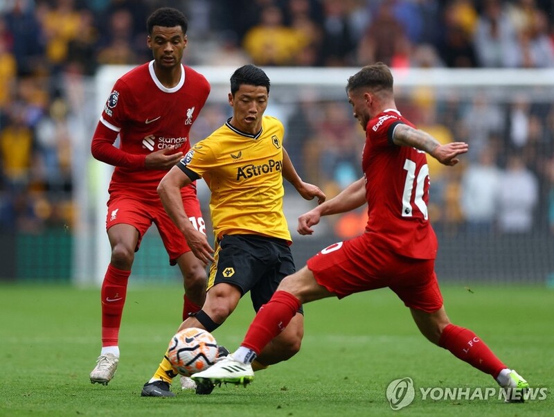 | ▲ 리버풀 전에서 경기하는 황희찬(가운데) [로이터=연합뉴스] |