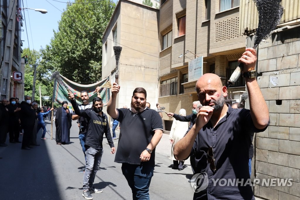 | ▲ '아슈라' 맞아 쇠사슬로 어깨 내리치는 이란인 (테헤란=연합뉴스) 이승민 특파원 = 8일(현지시간) 이란 테헤란 샤리아티 거리에서 열린 '아슈라' 기념행사에 참석한 시민이 쇠사슬 채찍으로 자신의 어깨를 때리고 있다. 아슈라는 이슬람 시아파 최대 행사로 이맘 후세인의 비극적인 죽음을 추모하는 날이다. 2022.8.8 logos@yna.co.kr |