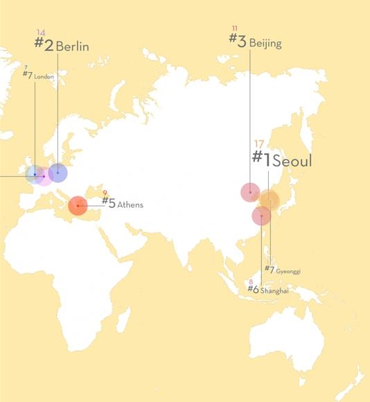 특히 서울에는 17개 사립미술관이 있어 세계에서 사립미술관이 가장 많은 도시로 조사됐다. 이어 독일 베를린(14개), 중국 베이징(11개), 미국 뉴욕(10개), 그리스 아테네(9개) 등 순이었다.