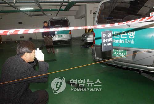 | ▲ This file photo shows police investigating the scene of a Dec. 21, 2001, bank robbery and murder in Daejeon, about 150 kilometers south of Seoul. (Yonhap) |