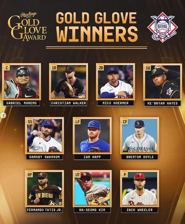 김하성은 6일(한국시간) 발표된 2023 MLB 양대리그 골드 글러브 수상자 명단에서 내셔널리그 유틸리티 야수 부문 황금 장갑 수상자로 호명됐다.