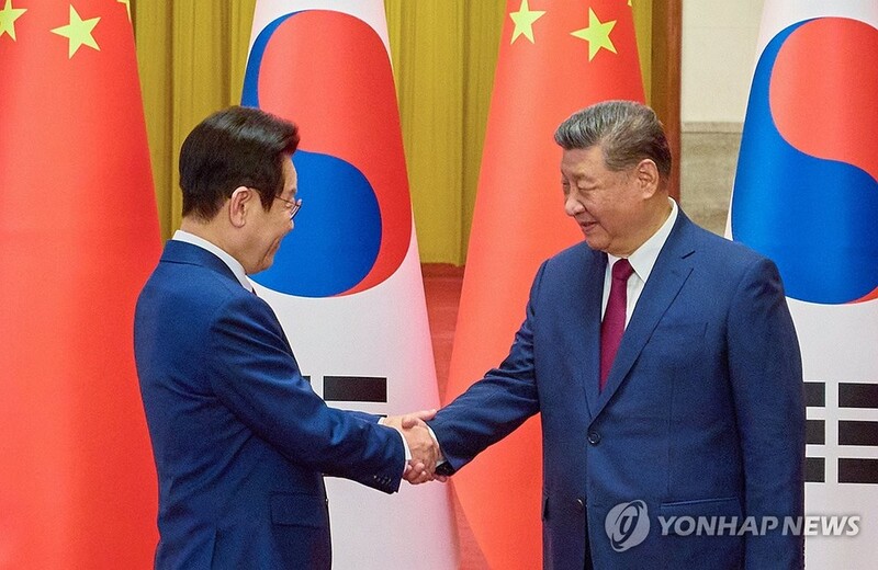 BEIJING, Jan. 5 (Yonhap) -- President Lee Jae Myung and Chinese President Xi Jinping agreed Monday that turning the Yellow Sea into a "peaceful and co-prosperous" sea is important for the stable development of bilateral ties, Cheong Wa Dae said, amid Seoul's concerns over Beijing's steel structures in a jointly managed maritime zone.