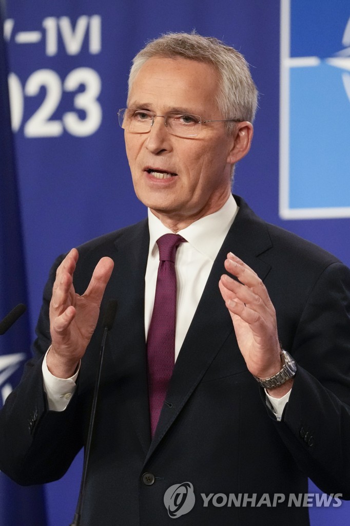 | ▲ In this Associated Press photo, North Atlantic Treaty Organization Secretary General Jens Stoltenberg speaks during a media conference after the meeting of NATO foreign ministers in Oslo, Norway, on June 1, 2023. (Yonhap) |