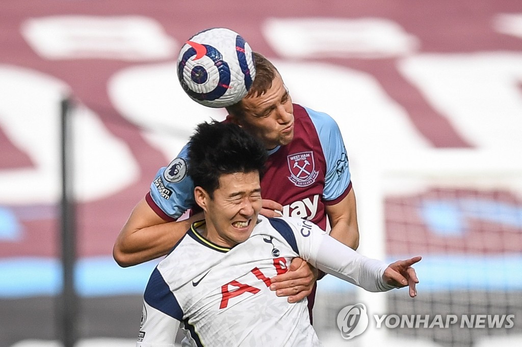 | ▲ 웨스트햄 토마시 수첵과 공중볼을 다투는 토트넘의 손흥민 (EPA=연합뉴스) |