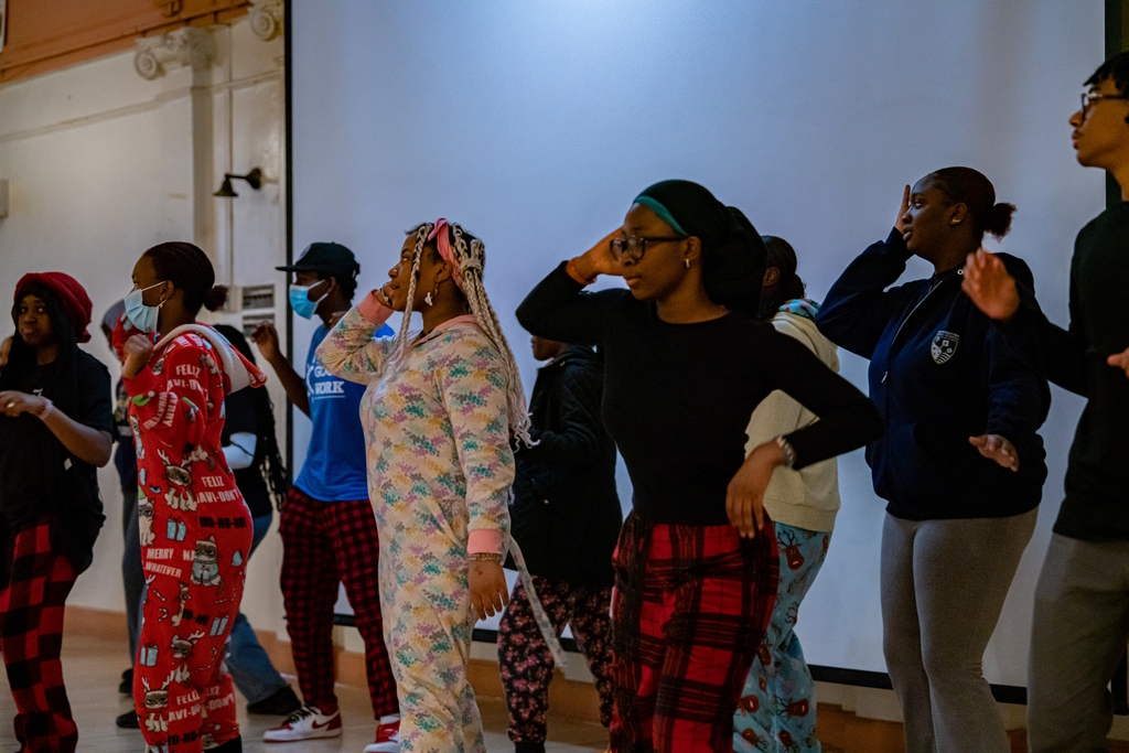 | ▲ K팝 댄스 배우는 뉴욕시 데모크라스 프렙 할렘 고교생들 [뉴욕한국문화원 제공] |
