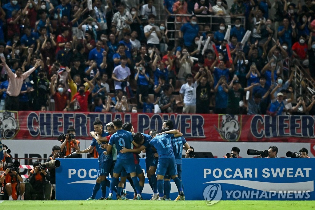 | ▲ 2-0 만드는 골 넣고 기뻐하는 태국 선수들 [AFP=연합뉴스] |