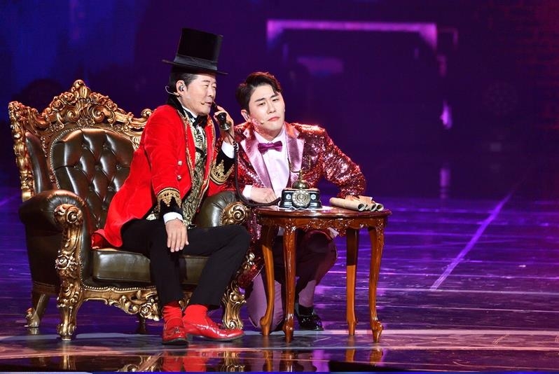 (서울=연합뉴스) 강애란 기자 = 대한민국 최고령 MC 송해의 96년 인생사가 트로트 가수들이 꾸민 뮤지컬 무대에 펼쳐졌다.