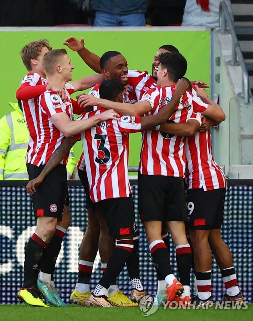 | ▲ 아이반 토니 득점 후 기뻐하는 브렌트퍼드 선수들 [Action Images via Reuters=연합뉴스] |
