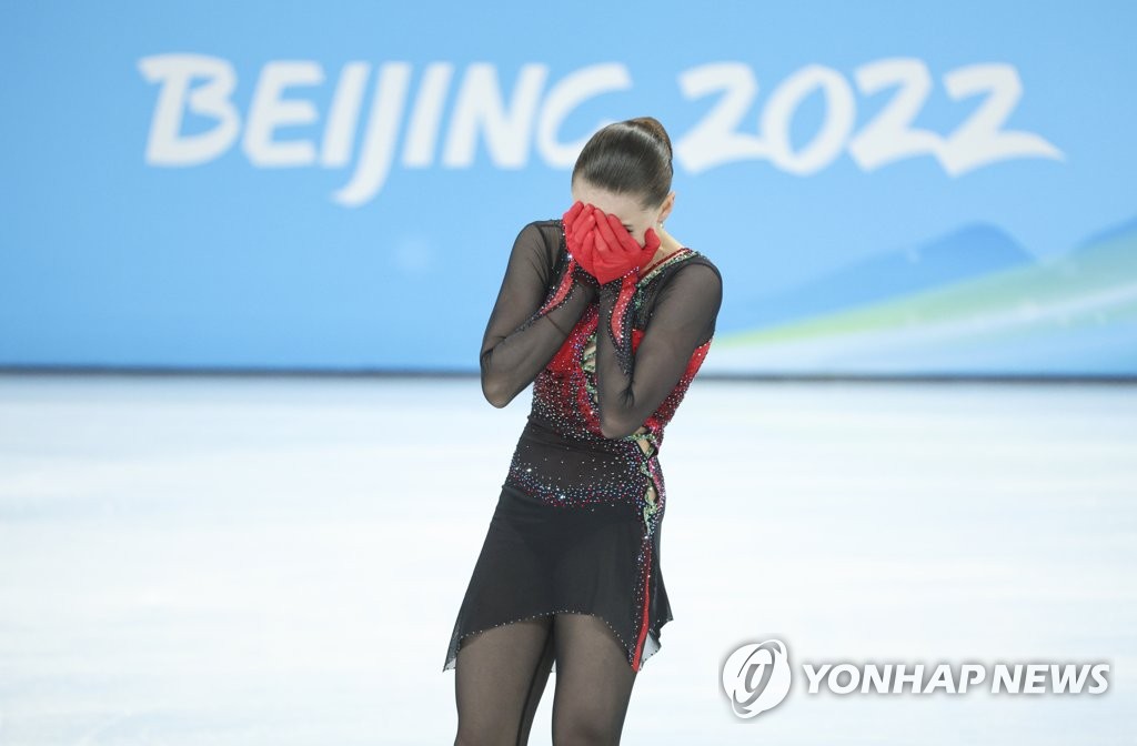 | ▲ [올림픽] 경기 마친 발리예바 (베이징=연합뉴스) 임화영 기자 = 러시아올림픽위원회(ROC)의 카밀라 발리예바가 17일 오후 중국 베이징 캐피털 실내경기장에서 열린 2022 베이징 동계올림픽 피겨스케이팅 여자 싱글 프리스케이팅에서 연기를 마친 후 두 손으로 얼굴을 감싸고 있다. 2022.2.17 hwayoung7@yna.co.kr |