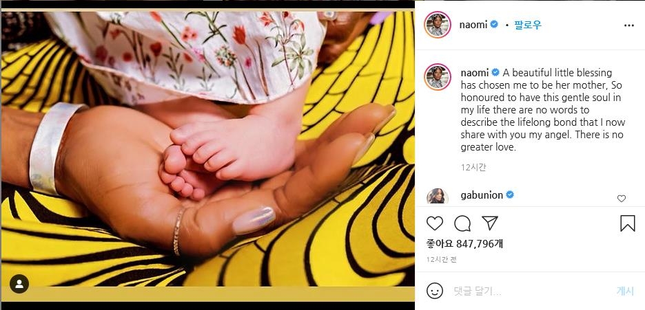 | ▲ 자신이 엄마가 됐다는 소식을 알리는 슈퍼모델 나오미 캠벨 인스타그램 글. [인스타그램 갈무리=연합뉴스] |