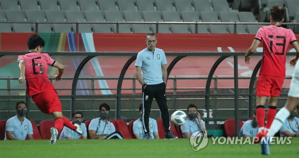 (서울=연합뉴스) 최송아 기자 = 2022 카타르 월드컵 최종예선 첫 경기를 홈 경기 무승부로 아쉽게 시작한 축구 국가대표팀의 파울루 벤투 감독은 이라크를 상대로 한 골도 만들어내지 못한 공격에 특히 아쉬움을 표현하며 해법을 찾겠다고 다짐했다.