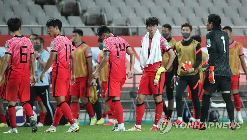 | ▲ 벤투호, 이라크와 월드컵 최종예선 1차전 무승부 (서울=연합뉴스) 박동주 기자 = 2일 서울월드컵경기장에서 열린 2022 카타르 월드컵 최종예선 A조 1차전 대한민국과 이라크의 경기를 무승부로 마친 손흥민이 아쉬워하고 있다. 2021.9.2 pdj6635@yna.co.kr |