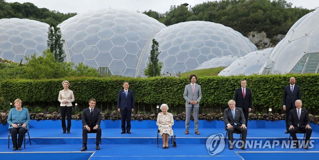 | ▲ G7 정상들과 기념사진 촬영하는 영국 여왕 [콘월 AFP=연합뉴스] |