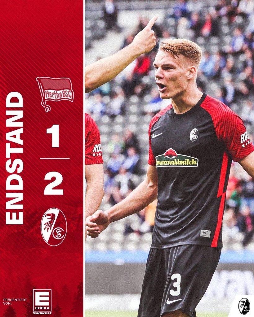 프라이부르크는 헤르타 베를린을 2-1로 물리치고 이번 시즌 리그 개막 이후 4승 3무의 상승세를 이어가며 3위(승점 15)를 달렸다.