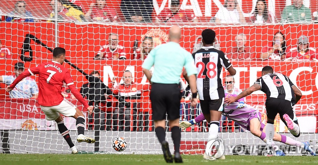 호날두는 12일(한국시간) 영국 맨체스터의 올드 트래퍼드에서 끝난 2021-2022시즌 잉글랜드 프리미어리그(EPL) 4라운드 뉴캐슬 유나이티드와 홈 경기에 선발 출전해 선제골과 결승골을 넣어 맨유를 4-1 완승으로 인도했다.