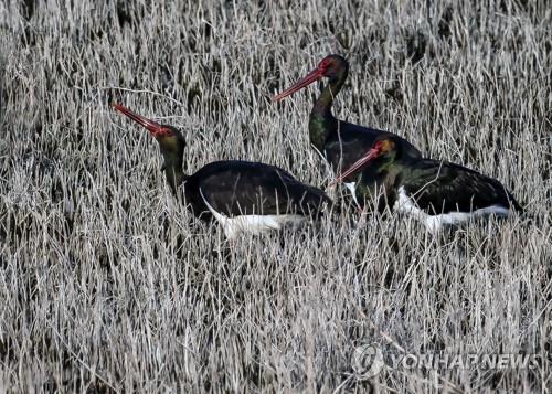 겨울에 드물게 국내로 날아든 먹황새가 발견되고 있다.