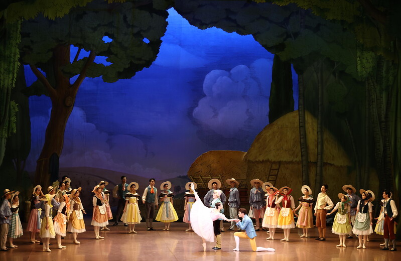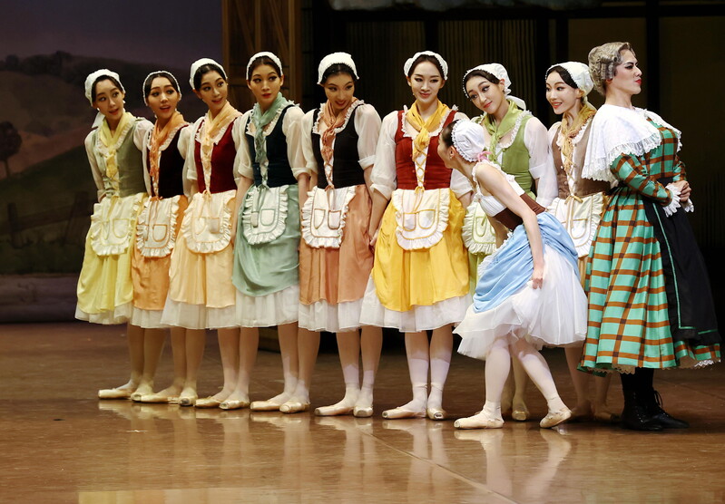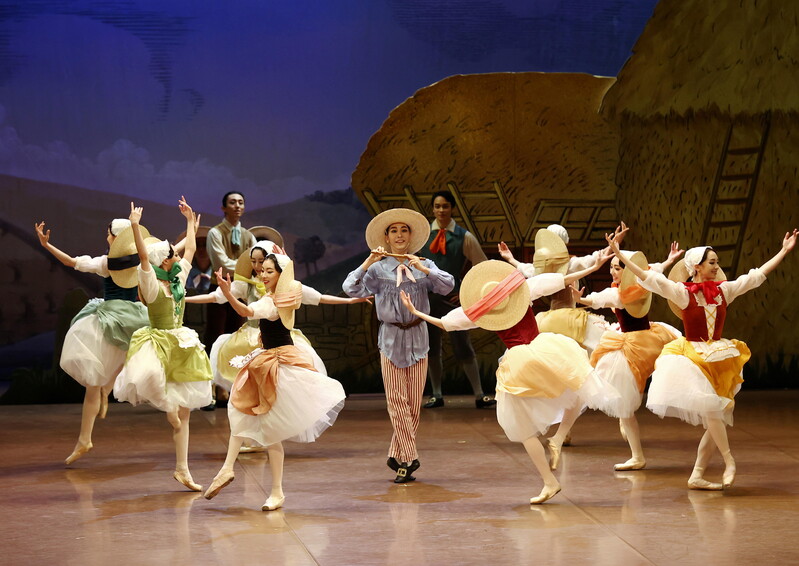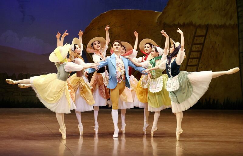 Ballet dancers perform during a publicity event at the National Theater of Korea in Seoul on June 7, 2022, to promote the ballet, "La Fille Mal Gardee (The Wayward Daughter)." The ballet will be held from June 8-11. (Yonhap)