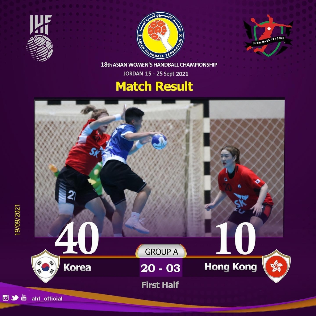 | ▲ 한국과 홍콩의 경기 결과 [아시아 핸드볼연맹 소셜 미디어 사진. 재판매 및 DB 금지] |