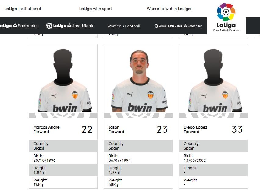 | ▲ 프리메라리가 홈페이지 발렌시아 선수 명단에 올라 있는 안드레(왼쪽). [프리메라리가 홈페이지. 재판매 및 DB 금지] |