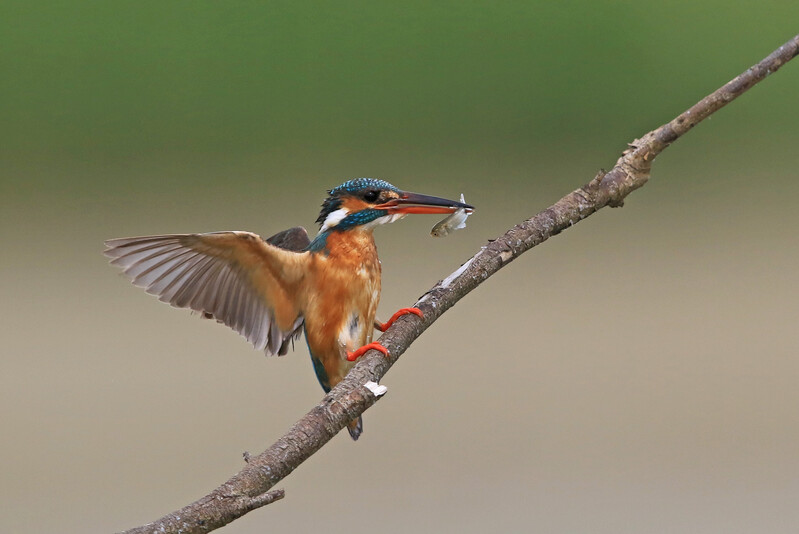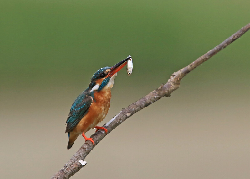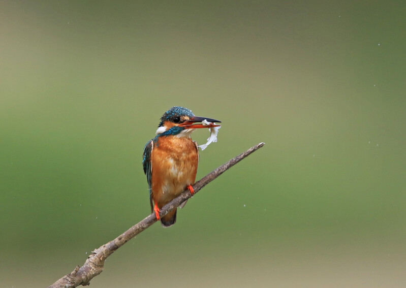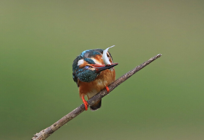 An Eurasian kingfisher is swallowing the fish it has hunted.