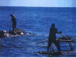 이는 오동나무 등 통나무를 엮어 만든 떼배(뗏목)로 미역 군락이 있는 바위까지 이동해 돌미역을 채취하고 운반하는 전통 어업이다.