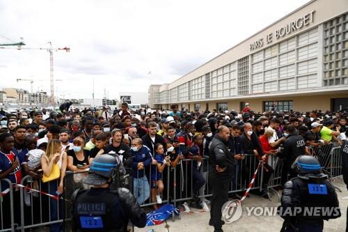 파리 16구에 있는 PSG 홈구장 파크 데 프랭스 앞에도 메시를 보고 싶어 하는 팬들이 모여 인산인해를 이뤘다.