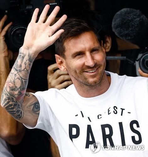 메시는 '여기는 파리입니다'(Ici c'est Paris)라는 PSG 슬로건이 적힌 흰색 티셔츠를 입은 채 공항 창가에 나타나 환히 웃으며 팬들을 향해 손을 흔들었다.