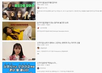 여성 아이돌 그룹 '오마이걸'의 멤버별 팬튜브 채널 중 구독자 3만 명, 채널 조회 수 500만 회 이상인 것만 총 32개에 달한다. '마마무'는 '하루종일마마무', '무무옥탑당' 등 18개 팬튜브 채널을 갖고 있다.
