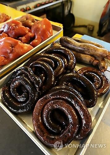 | ▲ This undated Yonhap file photo shows Yanbian Glutinous Rice Sundae displayed at Garibong General Market. (Yonhap) |