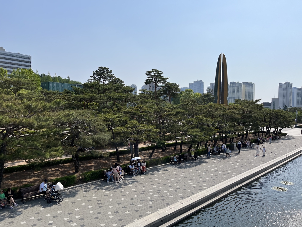 금요일인 지난 27일 오후 전쟁기념관 앞 호국공원에는 실제로 산책을 하거나 그늘진 벤치에서 담소를 나누는 시민들로 가득했다.