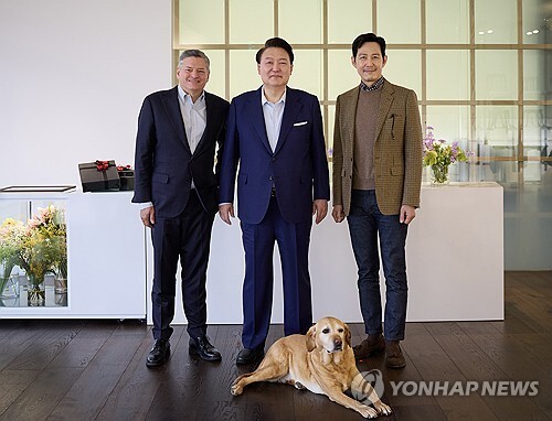 SEOUL, Feb. 18 (Yonhap) -- President Yoon Suk Yeol held a luncheon meeting with Netflix co-CEO Ted Sarandos and "Squid Game" star Lee Jung-jae earlier this week, his spokesperson said Sunday.