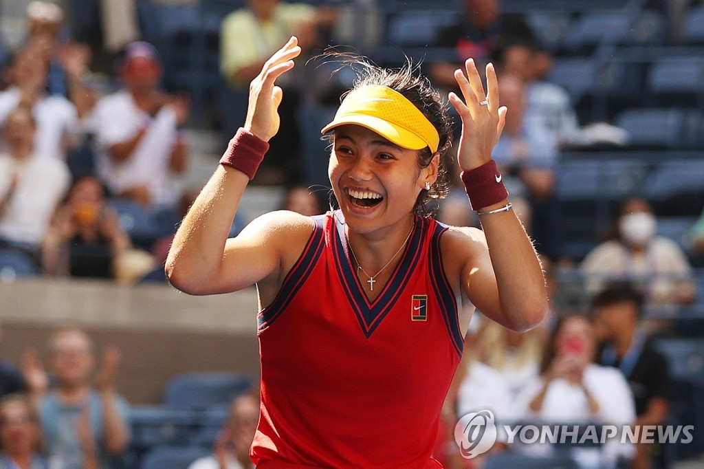 (서울=연합뉴스) 김동찬 기자 = 2002년생 에마 라두카누(150위·영국)가 예선 통과 선수 최초로 US오픈 테니스 대회(총상금 5천750만 달러·약 674억원) 여자 단식 4강에 올랐다.