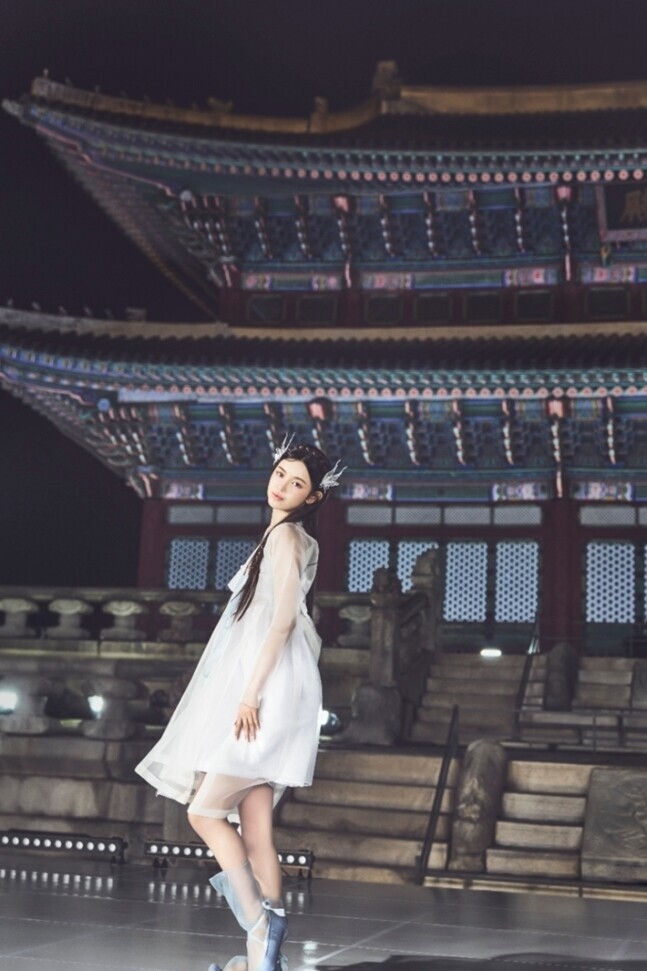 | ▲ This photo, provided by Korea On Stage on May 16, 2024, shows NewJeans' member Danielle in front of Geunjeongjeon in Gyeongbokgung Palace in central Seoul. (PHOTO NOT FOR SALE) (Yonhap) |