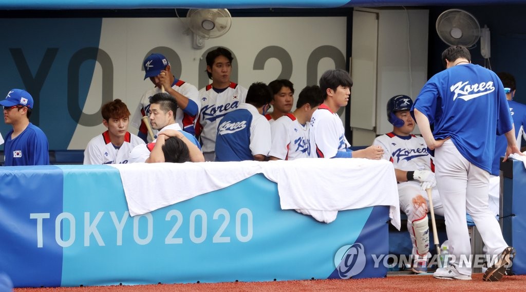 | ▲ [올림픽] 4위로 대회 마감하는 한국 야구 (요코하마=연합뉴스) 김인철 기자 = 7일 일본 요코하마 스타디움에서 열린 도쿄올림픽 야구 도미니카공화국과의 동메달 결정전. 6-10으로 패한 한국 선수들이 아쉬운 표정을 짓고 있다. 2021.8.7 yatoya@yna.co.kr |