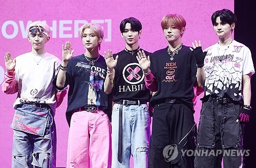 | ▲ Rookie K-pop boy group Nowadays pose for photos at the media conference for their second single, "NOWHERE," held in Seoul on Aug. 27, 2024. (PHOTO NOT FOR SALE) (Yonhap) |