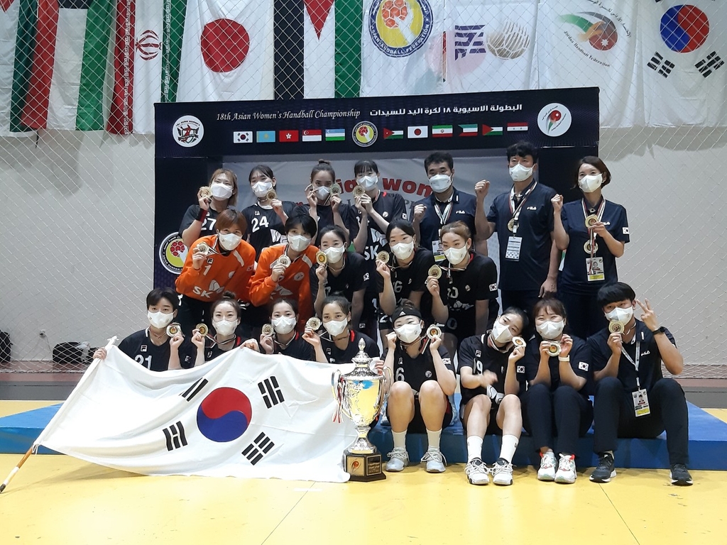 한국은 26일(한국시간) 요르단 암만에서 열린 제18회 아시아여자핸드볼 선수권대회 마지막 날 일본과 결승에서 33-24로 이겼다.
