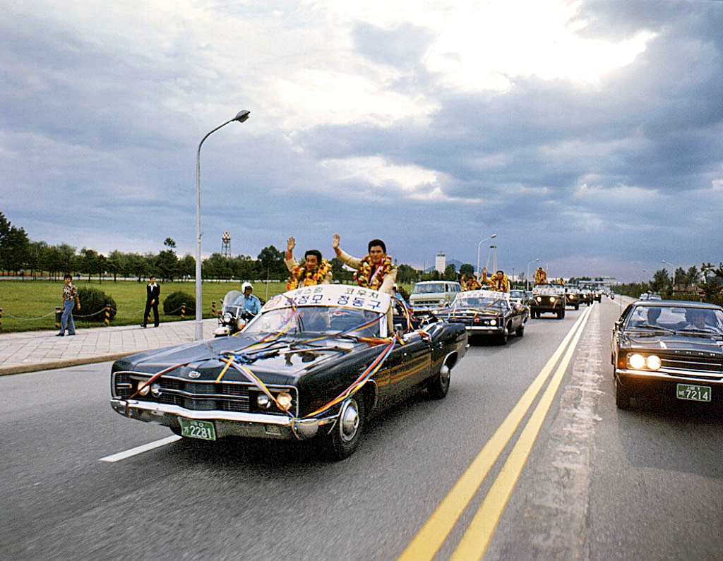 | ▲ 몬트리올 올림픽에서 한국 최초로 금메달을 딴 레슬링의 양정모 선수가 귀국해 카퍼레이드를 하고 있다. 1976년 [국가기록원 제공] |