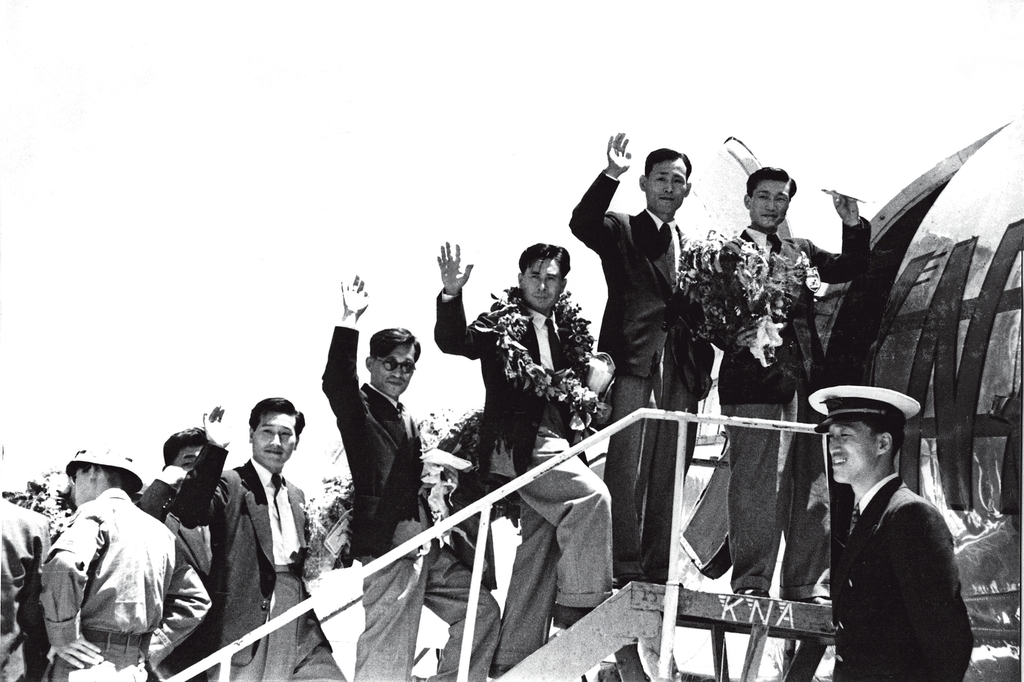 | ▲ 핀란드 헬싱키 올림픽에 출전하는 한국선수단이 부산 수영비행장에서 비행기에 오르고 있다. 한국은 전쟁 중임에도 6개 종목에 참가해 동메달 2개를 획득했다. 1952년 [임인식 제공] |
